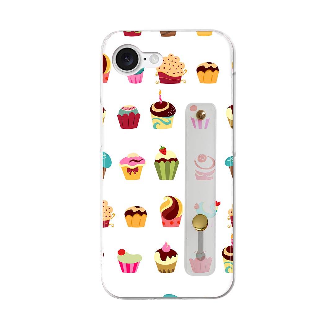 【送料無料】iPhone 16e 用 各キャリア 共通対応 iphone16e ハードケース スマホ ベルト付 スマホバンド 落下防止 シリコン スタンド機能付 スリム 背面 片手持ち カバー 携帯リング フィンガーリング 角度調整 008372 お菓子 スイーツ カラフル 模様