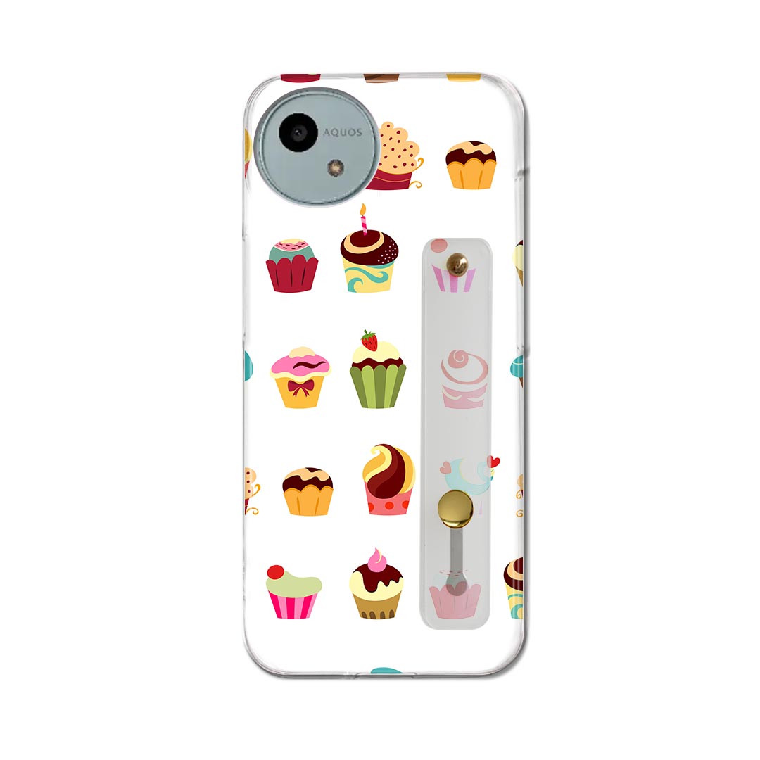 【送料無料】AQUOS wish4 用 SH-52E / A402SH 共通対応 ハードケース スマホ ベルト付 スマホバンド 落下防止 シリコン スタンド機能付 スリム 背面 片手持ち カバー 携帯リング フィンガーリング 角度調整 008480 お菓子 スイーツ イラスト カラフル