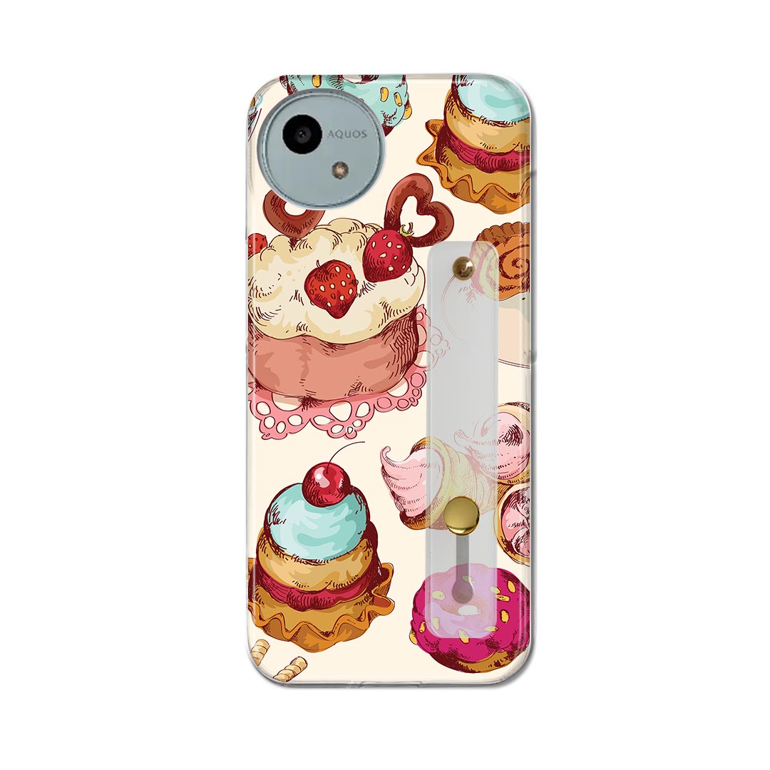 【送料無料】Xperia 10 VII 用 スマホカバー SO-52F / SOG16 / XQ-FE44 共通対応 ハードケース スマホ ベルト付 スマホバンド 落下防止 シリコン スタンド機能付 スリム 背面 片手持ち カバー 携帯リング フィンガーリング 角度調整 006426 お菓子 スイーツ イラスト