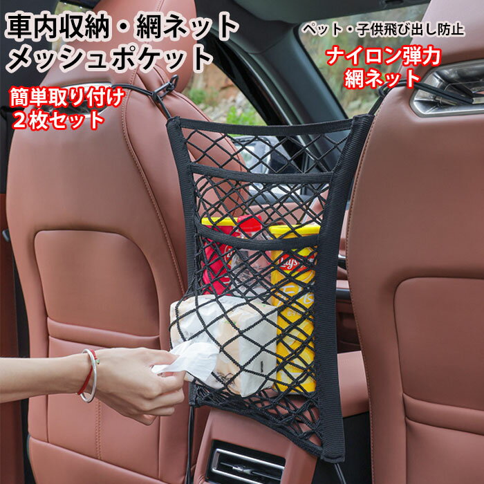 2枚セット 車内収納ネット 車内収納グッズ ネット 収納 車用収納ポケット 網袋 収納バッグ 汎用性 軽自動車 SUV カー用品 収納ネット シート 隙間収納 セーフティネット 座席間 車収納ポケット 飛び出し防止ネット ネットポケット 伸縮自在 簡単取り付け 座席間隙間収納