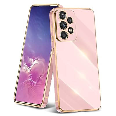 Galaxy A52 用ケース クリア 耐衝撃 TPU ケース レンズ保護 ソフトケース 透明 メッキ加工 ワイヤレス充電 ギャラクシーA52 用カバー ラップホール付き 薄型 軽量 メッキ枠 ピンク/ゴールド JP2-5