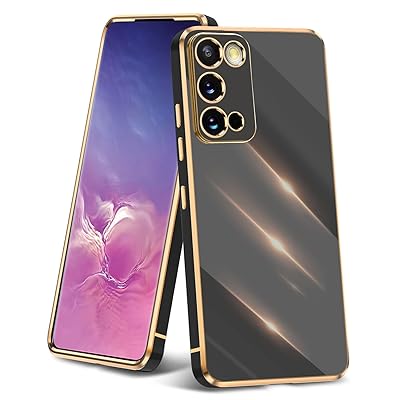 Galaxy S20 用ケース 薄型 TPU クリア 耐衝撃ケース レンズ保護 ソフトケース 透明 メッキ加工 ワイヤレス充電 ギャラクシーS20 用カバー ラップホール付き 軽量 メッキ枠 ブラック/ゴールド JP2-10