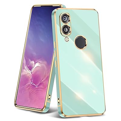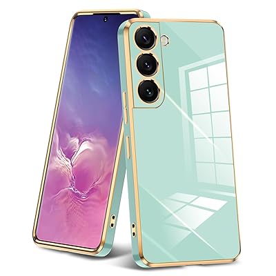 Galaxy S21 用ケース 薄型 TPU クリア 耐衝撃ケース レンズ保護 ソフトケース 透明 メッキ加工 ワイヤレス充電 ギャラクシーS21 用カバー ラップホール付き 軽量 メッキ枠 グリーン/ゴールド JP2-130