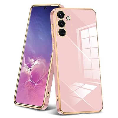 Galaxy S24 用 ケース クリア 耐衝撃 TPU ケース レンズ保護 ソフトケース 透明 メッキ加工 ワイヤレス充電 ギャラクシーS24 用 カバー ラップホール付き 薄型 軽量 メッキ枠 ピンク/ゴールド JP2-133