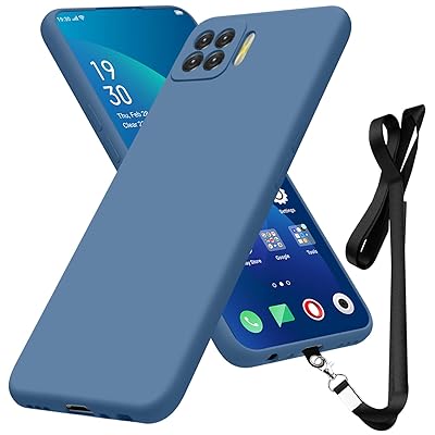 OPPO A73 ケース シリコン 薄型 軽量 ケース 縄掛け ストラップ付き 携帯ケース 落下防止 全面保護 TPU 取り外し可能 紛失防止 ワイヤレス充電対応 マット質感 さらさら肌触り 可愛い オッポA73 4G/F17カバー ソフトケース 青