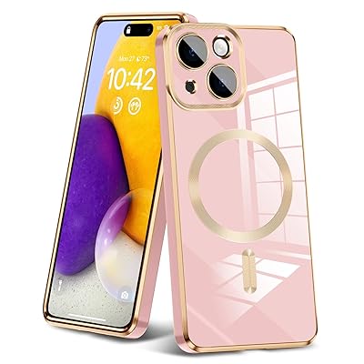 iPhone15 Plus 用ケース 耐衝撃 TPU ケース レンズ保護 メッキ加工 マグネット搭載ケース ソフト ワイヤレス充電 ストラップホール付き 黄変なし 薄型 軽量 アイフォン15 プラス 用カバー メッキ枠 人気 おしゃれ ピンク JP8