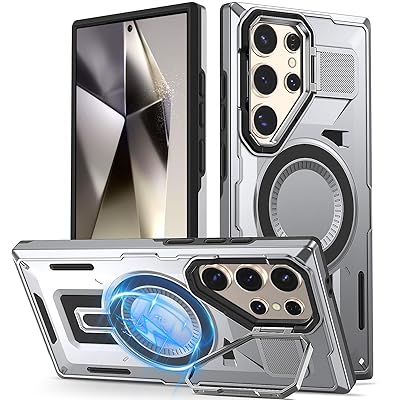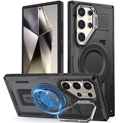 Galaxy S25 Ultra 用ケース マグネット搭載 耐衝撃 レンズ保護 隠しスタンドスマホケース ワイヤレス充電 指紋防止 黄変防止 スタンド機能 PC背面 TPUバンパー 頑丈 滑り止め ギャラクシーS25 ウルトラ用カバー 人気 おしゃれ
