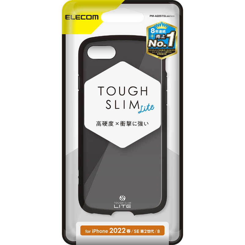■側面に弾力性のあるTPU素材を、背面に高硬度のポリカーボネート素材を使用した、iPhone SE 第3世代、iPhone SE 第2世代、iPhone 8、iPhone 7用TOUGH SLIM LITEケースです。■全周に配置した独自設計のエアークッションが衝撃を吸収し、背面には高硬度8Hの特殊樹脂を採用した、iPhone SE 第3世代、iPhone SE 第2世代、iPhone 8、iPhone 7用TOUGH SLIM LITEケースです。 ■2種の素材を特殊成形し強じんな耐久性としなやかな弾力性を合わせ持ったハイブリッドケースです。 ■背面は高硬度8Hの特殊なポリカーボネート製のケースが傷から保護します(※実力値)。 ■耐衝撃性能を備えながら、薄型・軽量設計を実現しています。 ■各種コネクターやボタン周りまでケースが覆うので、安心して使用できます。 ■ケースを装着したままで、純正の各種ケーブルの接続や写真撮影、ボタンの操作が可能です。 ■ストラップの取り付けができるストラップホールが付いています。※本製品にストラップは付属していません。 ■本製品はワイヤレス充電に対応しています。※お使いの充電器や環境によっては正常に充電できない場合があります。■対応機種:iPhone SE 第3世代、iPhone SE 第2世代、iPhone 8、iPhone 7■セット内容:ケース本体×1■材質:ケース本体:TPU(熱可塑性ポリウレタン)、ポリカーボネート■カラー:ブラック■ワイヤレス充電器対応:○エレコムダイレクトショップ側面に弾力性のあるTPU素材を、背面に高硬度のポリカーボネート素材を使用した、iPhone SE 第3世代、iPhone SE 第2世代、iPhone 8、iPhone 7用TOUGH SLIM LITEケースです。全周に配置したエアクッションと背面に特殊樹脂を採用したTOUGH SLIM LITEケース全周に配置した独自設計のエアクッションが衝撃を吸収し、背面には高硬度8Hの特殊樹脂を採用した、iPhone SE 第2世代、iPhone 8、iPhone 7用TOUGH SLIM LITEケースです。強じんな耐久性としなやかな弾力性2種の素材を特殊成形し強じんな耐久性としなやかな弾力性を合わせ持ったハイブリッドケースです。傷に強い高硬度8H背面は高硬度8Hの特殊なポリカーボネート製のケースが傷から保護します(※実力値)。耐衝撃性能を備えながら、薄型・軽量設計を実現耐衝撃性能を備えながら、薄型・軽量設計を実現しています。※画像の商品はPM-A22STSLWH( ホワイト )です。各種コネクタやボタン周りまで覆う各種コネクタやボタン周りまでケースが覆うので、安心して使用できます。装着したまま、接続や操作が可能ケースを装着したままで、純正の各種ケーブルの接続や写真撮影、ボタンの操作が可能です。※画像の商品はPM-A22STSLWH( ホワイト )です。ストラップホール付きストラップの取り付けができるストラップホールが付いています。※本製品にストラップは付属していません。ワイヤレス充電対応本製品はワイヤレス充電に対応しています。※お使いの充電器や環境によっては正常に充電できない場合があります。