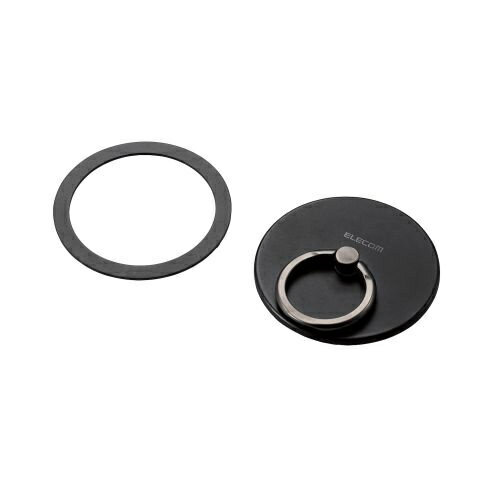 ELECOM P-STRMKPSLBK マグネットスマホリング/ 薄型/ メタルプレート付属/ ブラック【在庫目安:お取り寄せ】
