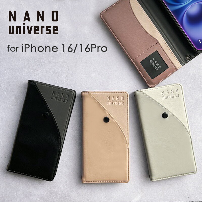 【4日20時〜P10倍】iPhone16 ケース 手帳型 iPhone16Pro NANO universe 正規品「手帳ケース/バイカラー」アイフォン16 カード収納 スタンド機能付き ブランド スマホケース iphoneケース