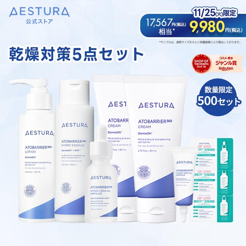 \11月25日限定★35%OFFクーポン配布/【公式】アトバリア365 乾燥対策5点セット ハイドロエッセンス セラヒアルセラム エマルジョン クリーム スキンケアセット 化粧水 乳液 美容液 保湿 保湿クリーム フェイスクリーム 顔 化粧品 セラミド アトピー 敏感肌 乾燥肌