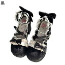 おでこシューズ レース メイド ロリータ 靴 レディース ゴスロリ ゴシック 可愛い 厚底 蝶結び プラットフォーム 森ガール お嬢様 美脚 コスプレ靴 仮装 ダンス 歩きやすい ラウンドトゥ