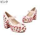 21.5-26.5cm パンプス アンクルストラップ 莓プリント 8.5cmヒール いちご レディース ロリータシューズ 蝶結び 原宿系 可愛い ハイヒール 甲ストラップ 厚底靴 森ガール コスプレ メイドシューズ ガールズ