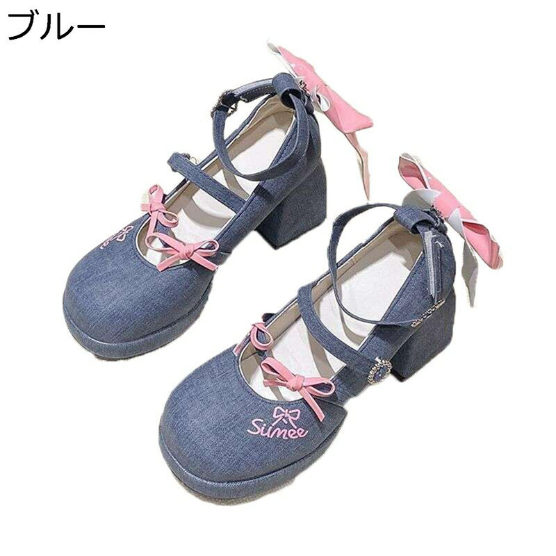 ロリータ 靴 パンプス 厚底靴 レディース ロリータシューズ バックリボン 蝶結び 太ヒール 可愛い ゴスロリ お嬢様風 防水 森ガール shoes 前厚 美脚 可愛い 姫系 柔らかい おでこシューズ 女の子