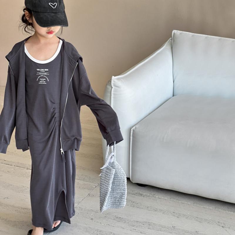 ・カテゴリ: キッズセットアップ・性別: 女性・対象年齢: 3〜8歳、身長100〜140cm・スタイル: 韓国風・テイスト: 田園風、可愛らしい、プリンセス風、トレンド・セット内容: ワンピースセット・セット点数: 2点セット・主な素材: 綿・生地加工: 柔軟加工・厚さ: 薄手・袖丈: ノースリーブ・フード: 付き・開閉: プルオーバー・柄: 無地、アルファベット・カラー: ダークグレー・対応身長: 110cm、120cm、130cm、140cm、150cm、160cm
