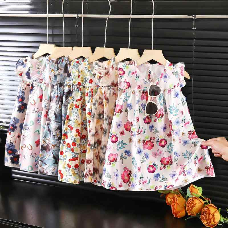 女児 ワンピース 夏用 プリント柄 かわいい プリンセス デザイン ビーチ 遊びに ポリエステル 柔らかい Aライン スカート ショート丈 ピンク グリーン カラーバリエーション 女の子 子供服 3〜8歳向け 通年対応 軽量 快適 かわいい 動物柄 花柄