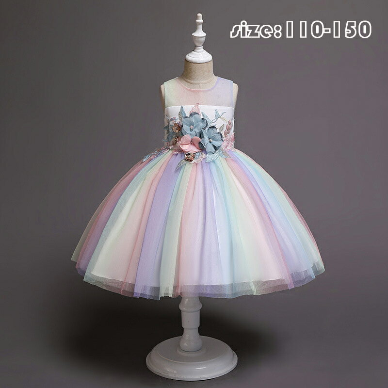 【36H限定:P5倍UP!!】【楽天1位】子供ドレス ピアノ 発表会 キッズドレス 110-150CM 虹色 ヘア飾り パニエ こども フォーマル パーティー 花柄 ベビードレス スバンコール リボンドレス フラワーガール レインボー 誕生日 七五三 入園式 入学式 クリスマス ギフト 音楽祭