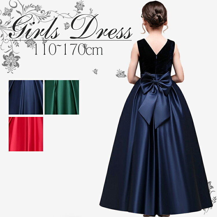 即納 子供ドレス 豪華 タフタ素材を使用したドレス140/150/160cm ブラック ネイビー ブルー パープル グリーン レッド Aラインドレス 発表会 ガールズ ドレス ロングドレス キッズドレス 子ども ドレス 発表会 結婚式 上質 ドレス