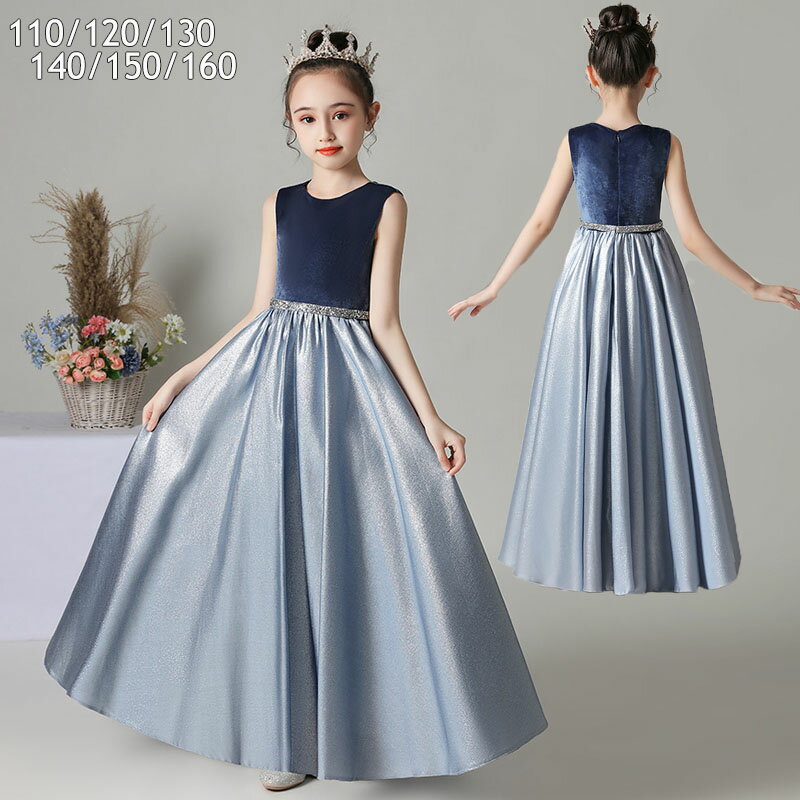 子供 フォーマル 発表会 ドレス ロングドレス 女の子 ピアノ ドレス 素敵 高級 コンクールドレス イベント用 子ども ロング丈ドレス ジュニア ドレス 写真撮影 演奏会 ロング丈 ドレス ブルー 110cm 120cm 130cm 140cm 150cm 160cm
