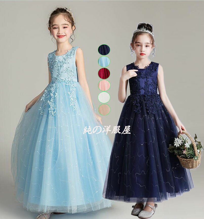 子供ドレス キッズ カラードレス ロング フリル ドレス ノースリーブ チュチュ ドレス レース ビーズ スパンコール ふんわり 女の子 結婚式 パーティー 発表会 演奏会 お姫様 ロング ドレス 演出 ダンス 衣装 ロング ワンピース カラフル 白 ピンク 黒 紺 青 赤 120~170