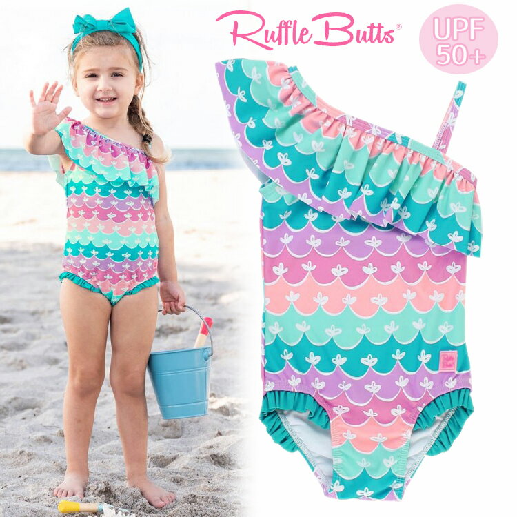 こども 水着 スイムウエア ワンピース Ruffle Butts ラッフルバッツ マーメイドワンショルダーワンピース キッズ水着 3歳 95cm 紫外線遮蔽率50+(UVカット率 最高値)