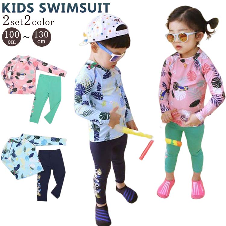 キッズ 水着 女の子 男の子 ベビー水着 赤ちゃん セパレート 子供 子ども スクール水着 ラッシュガード セットアップ 長袖 長パンツ 花柄 レギンス 小学生 お洒落 オレンジ 可愛い 日焼け止め