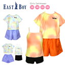 EASTBOY セパレート 水着 4点セット キッズ ジュニア 女の子 130 140 150 160 ミント オレンジ イーストボーイ 33250394 タンキニ Tシャツ カバーアップ トップス キャミソール ショートパンツ タイダイ ロゴ グリーン パープル イエロー ブラック