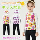 水着 キッズ スクール水着 プール 女の子 女児 レギンス ラッシュガード セパレート 3点セット 長袖 ロングパンツ スイムキャプ スイムスーツ UVカット 日焼け防止 子供用 花柄 オレンジ パープル 80/90/100/110/120/130/140cm