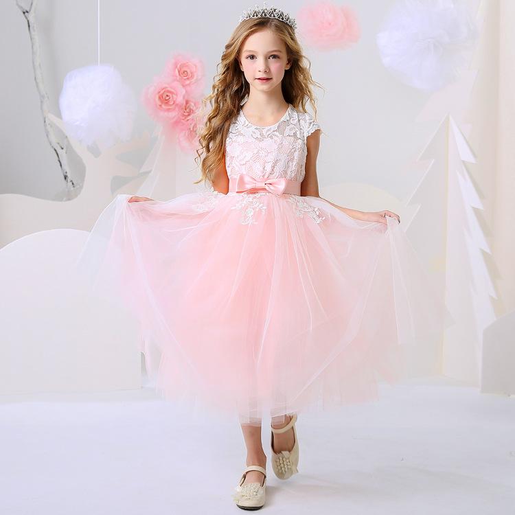 ドレス 女の子 ピアノ発表会 結婚式 誕生日 プリンセス 子供服 キッズ ジュニア フォーマル ロング ワンピース レース チュール リボン かわいい 華やか 上品 高級感 白 ピンク 欧米風 舞台衣装 コットン フレア