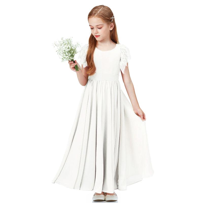 ドレス 女の子 キッズ ジュニア ワンピース プリンセス マキシ丈 まつげレース 刺繍 シフォン 長袖 チュール 結婚式 発表会 誕生日 フォーマル パーティー 高級感 かわいい 綿 レーヨン 春夏 秋冬 オフホワイト