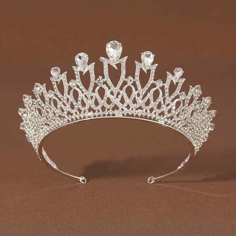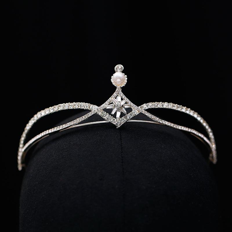 ヘアアクセサリー レディース 韓国風 シンプル エレガント プリンセス クラウン 王冠 ティアラ 花嫁 ブライダル ウェディング 結婚式 披露宴 成人式 誕生日 パーティー 発表会 ラインストーン キラキラ 合金製 シルバー 髪飾り