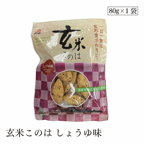 有機玄米を使用したリーフ型のかわいいおせんべい。香り豊かな醤油味が玄米の甘みを引き立てます。パリッと軽い食感で、小腹満たしやおやつにぴったり。国産素材・無添加でヘルシー志向の方にも。 使用方法☆おやつに。 ☆玄米食の代わりにお召し上がりください。 茶わん1杯分の玄米ごはんの量は「玄米このは」14〜15枚(約50g)に相当します。 保存方法直射日光・高温多湿を避けて保存してください。 原材料名 有機玄米(国産)、しょうゆ(小麦、大豆を含む)、黒ゴマ、米油、ゴマ油 内容量 80g 栄養成分表示1袋(80g)あたり エネルギー:306.4kcalたんぱく質:6.7g脂質:3.7g炭水化物:63.6g食塩相当量:1.62g