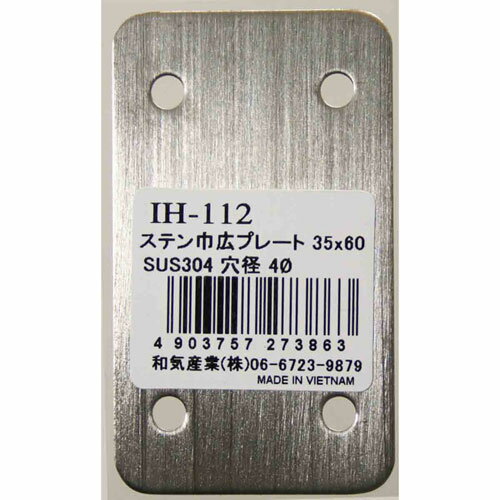 (LINEクーポン有)和気産業 4903757273863 IH−112 ステン巾広プレート 横幅60.2mmX縦幅35mmX板厚2mm ステンレス 補強金物 WAKI
