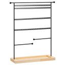 イヤリング展示タワー 金属 ネックレスディスプレイオーガナイザー ジュエリーホルダー 木製トレイ付き ブレスレット用 指輪 イヤリング ネックレス ブラック 4層