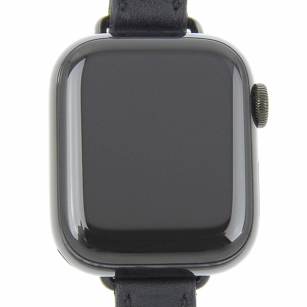 アップルウォッチ × エルメス HERMES Apple Watch Series7 45mm GPS ステンレススチール レザーベルト 黒文字盤 スマートウォッチ レディース スイス製 2021年 中古 Aランク