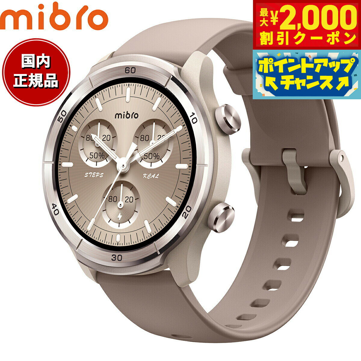 \店内2000円OFFクーポン&さらに+9倍/ ミブロ A3 Mocha 充電式クォーツ スマートウォッチ ブランド メンズ レディース Bluetooth mibro SP380014-C233 デジタル ベージュ モカ