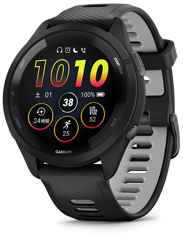 □「返品種別」について詳しくはこちら□2023年03月 発売Joshin web試用レポートあり!シリーズ初の「AMOLEDタッチディスプレイ」搭載!メーカー保証期間 1年【ご使用にあたって】※本製品は医療目的での使用はできません。※本製品をご使用いただくには、スマートフォン等の機器が必要となります。※対応機器・バージョンについてお確かめの上ご購入ください。※対応機器との連携には、アプリケーション(Garmin Connect Mobile)の準備が必要となります。【 ご購入後のお問い合わせにつきまして 】初期不良診断・修理等・技術的なご質問につきましては「ガーミンジャパン」へ直接お問い合わせください。AMOLED タッチディスプレイを備えた、GPS ランニングスマートウォッチ。「Forerunner 265」シリーズ大会出場やフルマラソン完走を目指してランを楽しむチャレンジランナーに◆ディスプレイデザインも大きく変更。見やすさだけでなく、こだわりのデザインAMOLEDにより実現した奥行き感と鮮やかな色合いに伴い、ディスプレイデザインも大きく変更。コントラストを活用したカラーデザインと読みやすく大きな文字表記を実現しました。◆トレーニングレディネス(トレーニングの準備)睡眠、睡眠履歴、リカバリータイム、HRVステータス、トレーニング負荷、ストレスなどの情報から今日のトレーニングが身体にどれくらいの影響を与え、ハード・リラックスどちらが最適か判断できます。ステータス評価は、悪い・低い・中・高い・最高、の5段階、定量的評価は0から100と細かい評価を提示します。◆タッチスクリーン追加で操作性が向上従来のボタン操作に加え、タッチスクリーン操作が可能に。切り替えや同時操作が可能なので、レースやトレーニング時はボタンで、スマートウォッチとしての日常使用やマップ操作はタッチスクリーンでと、シーンに合わせて選択できます。◆レースウィジェットレース情報、目標情報を入力することで、天気やパフォーマンスに基づくトレーニングの進捗情報やヒント、レース当日の予測タイムなどを表示し、レースに向け最高のコンディションを整えます。専用アプリ「Garmin Connect」を活用し、レース当日と前日のコンディションをサポートする「My Day」機能を搭載。またレース結果に基づいたレース後ケアやトレーニングなども計画できます。◆手首ベースでの「ランニングパワー」の計測を実現これまで別売りの「ランニングダイナミクスポッド」やハートレートセンサー『HRM-Pro』とのペアリングが必要だったランニングパワーを、手首ベースの計測が可能。 ペース変動計測に基づいたクリティカルパワーの数値化も実現。より精密なランナーのパワー解析を指標化することで、タイム更新のためのヒントを提示します。◆モーニングレポートアスリートにとって、起床時のコンディションとその日のトレーニング内容のすり合わせは重要。モーニングレポートは、その日の全てのトレーニング情報を1か所に集約。睡眠、前日のトレーニングからの回復情報、トレーニングの見通しなどの概要を表示し、日々のトレーニングをサポートします。◆HRVステータス(心拍変動ステータス)睡眠中の心拍数の変動をモニタリング。健康状態について、より深い洞察を分かりやすい指標で行事します。5分ごとに測定し、睡眠中の平均、一晩(6時間)平均、一晩の7日間平均、バックグラウンド(最低3週間)計測などを解析表示します。ステータス評価は、悪い・低い・アンバランス・バランスの4段階で表示し、より感覚的なコンディション把握が可能です。◆トレーニングステータス最近の運動履歴とパフォーマンス指標を評価し、生産的にトレーニングを行えているか、ピークに達しているか、またはオーバーリーチしているかを知らせます。◆リアルタイムのスタミナ運動中のスタミナをリアルタイムで認識し、ランナーやサイクリストがトレーニングの強度・ペースの参考にすることでパフォーマンスの最適化をサポートします。◆おすすめワークアウト現在のトレーニング負荷とトレーニングステータスに基づいて、フィットネスレベルを考慮したランとバイクのワークアウトメニューを提案。入力した目標から自動作成することも可能です。7日分のワークアウト提案も可能です。また、トレーニングレディネスとワークアウトの連動も行えます。◆インターバルプロフィールデバイスの歩行/走行検出により、インターバルの分類が可能になり、アスリートのアクティブなステップと休憩のステップを区別できるようになりました。◆VO2Max(最大酸素摂取量)パフォーマンスの指標である最大酸素摂取量を計測。暑熱適応/高度適応機能のための22度を超える暑さや生活高度が800メートル以上の高地でのトレーニングにおいて、VO2Max測定値を補正しより正確なデータで環境にどの程度適応しているか把握できます。◆パフォーマンスコンディションランニング中のペース、心拍数、心拍変動を分析し、現在の