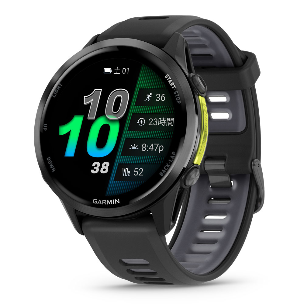 □「返品種別」について詳しくはこちら□2025年06月 発売Joshin web試用レポートあり!メーカー保証期間 1年【ご使用にあたって】※本製品は医療目的での使用はできません。※本製品をご使用いただくには、スマートフォン等の機器が必要となります。※対応機器・バージョンについてお確かめの上ご購入ください。※対応機器との連携には、アプリケーション(Garmin Connect Mobile)の準備が必要となります。【 ご購入後のお問い合わせにつきまして 】初期不良診断・修理等・技術的なご質問につきましては「ガーミンジャパン」へ直接お問い合わせください。◆ Forerunner 970 ◆「Forerunner 970」はマラソンやトライアスロンでトップレベルのパフォーマンスを発揮するために設計、さらに明るくなった高彩度AMOLEDディスプレイを搭載し、高度なトレーニング機能やコンディション管理をサポートする機能が充実しています。さらにForerunner 970は、シリーズ初のLEDフラッシュライトが内蔵され、ランナーのパフォーマンスアップをサポートする「ランニングエコノミー」や「ステップスピードロス」なども新搭載。◆さらに明るくなった高彩度AMOLED前モデルからさらに明るくなった高彩度AMOLEDディスプレイで、トレーニング時の見やすさを追求。コントラストを活用したカラーデザインと読みやすく大きな文字表記を実現しました。◆スピーカー&マイクLEDフラッシュライトが新搭載シリーズ初となるスピーカーとマイクが内蔵され、音声コマンド、音声アシスタントにより、手首から直接通話に対応したり、ウォッチ機能を呼び出すことができるようになりました。また、LEDフラッシュライトも追加され、早朝や夜間のランニング中でも安全性と視認性が確保できます。◆充実したスポーツ&ヘルスケア機能スポーツアクティビティ機能は、ランニングに加え、トライアスロン、サイクリング、筋トレ、ヨガ、スイム、ゴルフ、HIIT(高強度インターバルトレーニング)など100種類以上の豊富なスポーツに対応しています。ヘルスケア機能は、心拍数、呼吸数、ストレス、睡眠スコア付き睡眠モニタリング、体のエネルギー状態を数値化する独自の指標Body Battery、血中酸素トラッキングなど、健康状態を確認できます。◆日常生活に役立つスマート機能メールやSNSなどの通知機能、Suicaや音楽再生機能、また緊急時に役立つセーフティ機能などを搭載。スマートフォンとペアリングして日常生活もサポートします。◆ランニングエコノミーウォッチを HRM 600 (別売) とペアリングすると、長期間のランニング量、歩幅、ステップスピードロス (足が地面に着いたときにどれだけ減速するかを示す) を使用して、ランニング中のエネルギー効率を測定できます。◆ランニング耐久値それぞれのランニングが身体に与える影響をよりよく理解し、毎週の推奨最大走行距離を把握することで、負担をかけすぎずに効果的なトレーニングを続けることができます。◆フルカラー地図内蔵フルカラーの日本詳細地形図が搭載されているので、土地勘のない場所やレース中でも道に迷わないようにナビゲートしてくれます。◆Garmin Coach トレーニングプランGarmin Coach のランニング、トライアスロン、サイクリング、筋トレのプランで、レースや目標達成、フィットネス向上のためのトレーニングに取り組めます。選択したプランは、パフォーマンス、回復、健康状態に基づいて、毎日パーソナライズされたワークアウトに調整されます。◆心電図アプリ※心電図アプリは、センサーを使って心臓の拍動を制御する電気信号を記録します。記録された信号を分析することで、心房細動と呼ばれる不整脈の兆候を検出します。◆内蔵スピーカーとマイク互換性のあるスマートフォンとペアリングすれば、ウォッチから電話をかけたり受けたりできます。さらに、音声コマンドでウォッチの機能を操作したり、スマートフォンの音声アシスタントを使ってテキストメッセージに返信したりすることもできます。◆目標を計画・モーニングレポート・イブニングレポート・ダイナミックラウンドトリップ・トレーニングステータス・おすすめワークアウト・リカバリータイム・Body Battery エネルギーモニター・睡眠コーチ・お昼寝検出・HRVステータス・トレーニングレディネス・皮膚温度・女性のための健康トラッキング・レース予想タイム・予想レース時間◆効果的にトレーニング・ランニングダイナミクス・ステップスピードロス・光学式心拍計・マルチスポーツワークアウト・ヒルスコア・ストレスレベル計測・トレーニング効果・ヘルススナップショット・血中酸素トラッキング・クロストレーニング◆本番で力を発揮する・トライアスロンとマルチスポーツプロフィール・ランニングパワー・SatIQ機能とGNSSマルチバンド・PacePro・トラックラン・ClimbPro・リアルタイムスタミナ・コースポイント表示・タイミングゲートによる自動ラップ・フィニッシュラインの提案・スポーツアプ