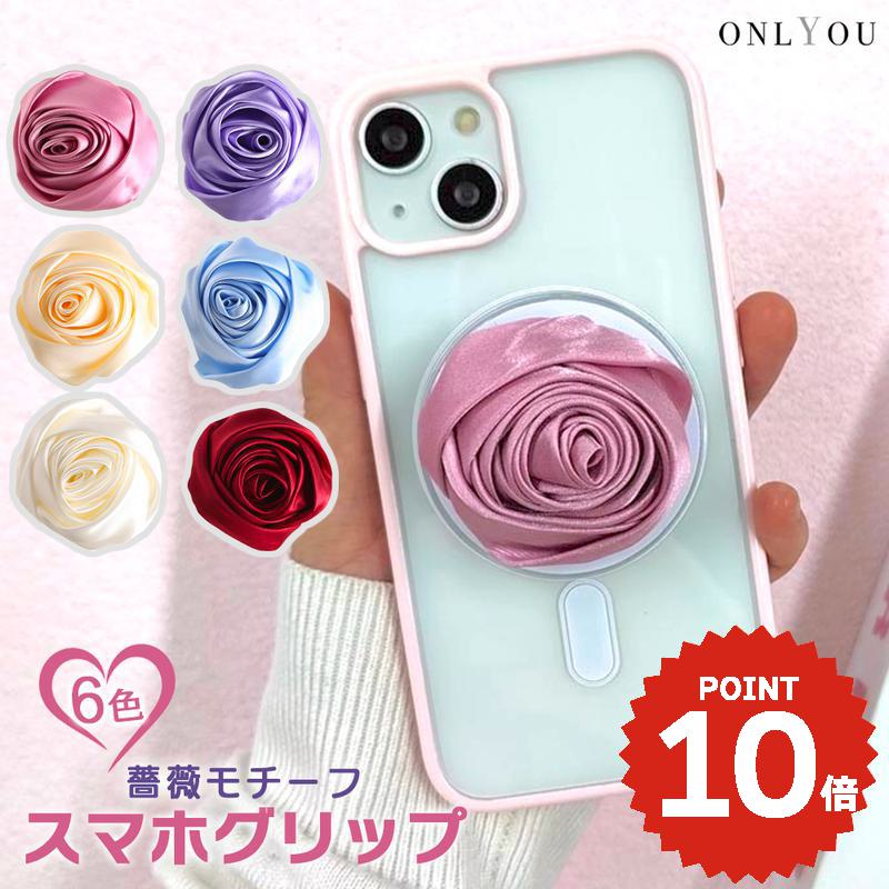 スマホグリップ 韓国 magsafe リング マグネット マグセーフ かわいい おしゃれ スマホリング グリップトック スマホスタンド スマホケース 携帯リング スマホアクセサリー 花 カラフル ローズ 薔薇 花 シンプル レディース