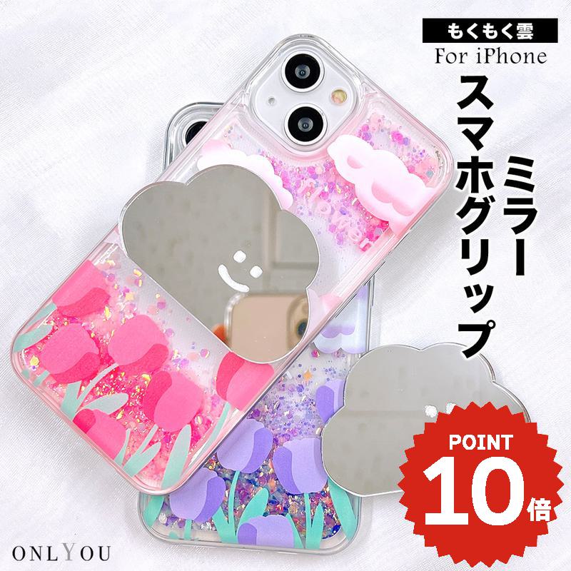 スマホグリップ 韓国 magsafe カードケース かわいい おしゃれ スマホリング グリップトック スマホスタンド マグセーフ スマホホルダー スマホアクセサリー カスタム クラウド 雲 表情 ミラー 鏡