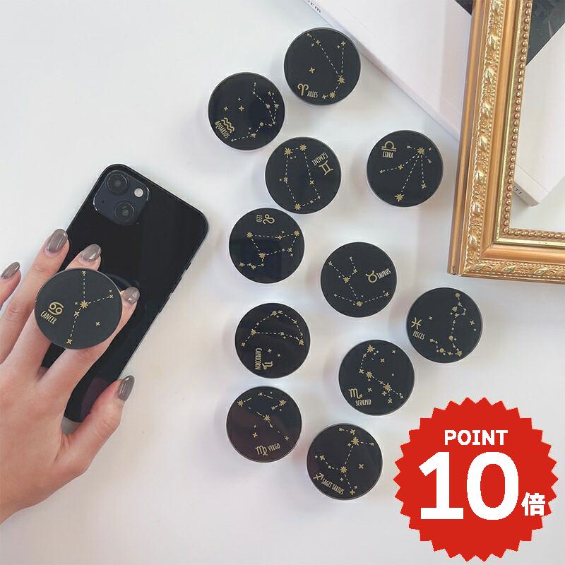 スマホグリップ 韓国 magsafe カードケース かわいい 星座 12星座 星 かわいい おしゃれ スマホリング グリップトック スマホスタンド マグセーフ スマホホルダー スマホアクセサリー カスタム 夜空 デザイン ブラック 貼るだけ ペア お揃い レディース