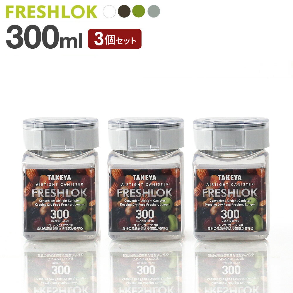 フレッシュロック 角型 300ml 3個セット 白/緑/茶/グレー | 保存容器 密閉 プラスチック おしゃれ 軽い キャニスター 便利 キッチン 収納 ワンタッチ 保管 タケヤ