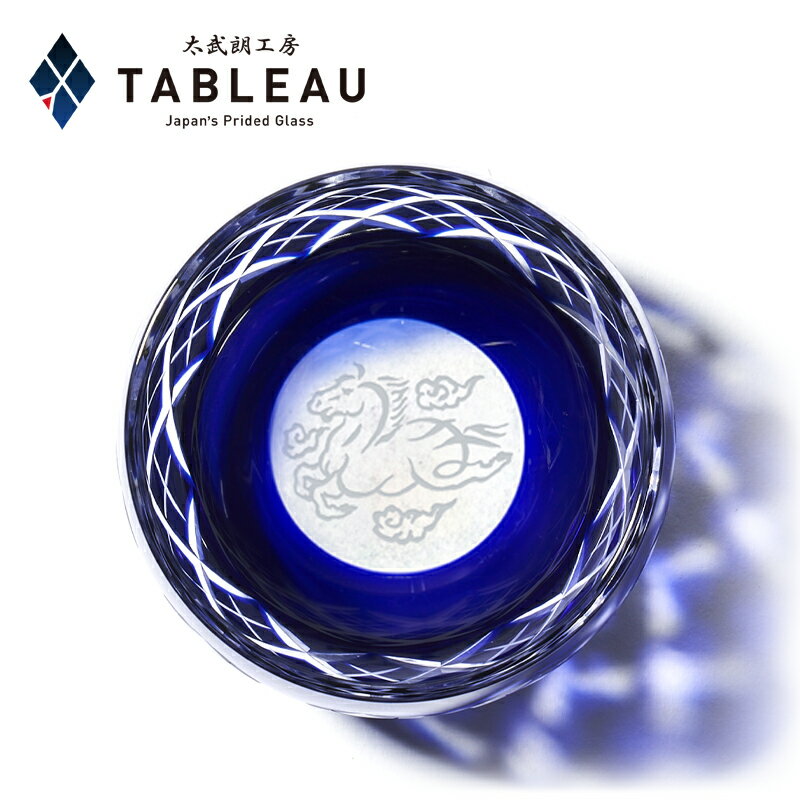 江戸切子 ぐい呑【 太武朗工房 公式 直販 】 2026年 干支「午」 ルリ 木箱入り 日本製