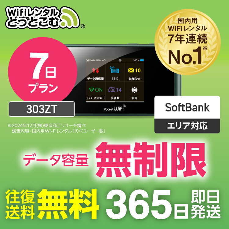 【送料無料・即日発送】WiFi レンタル 7日 無制限 レンタルwifi レンタルwi-fi wifiレンタル ワイファイレンタル ポケットWiFi レンタルワイファイ Wi-Fi ソフトバンク 空港受取 1週間 303ZT 引っ越しwifi 入院wifi 一時帰国wifi テレワーク 国内専用 在宅勤務 契約不要