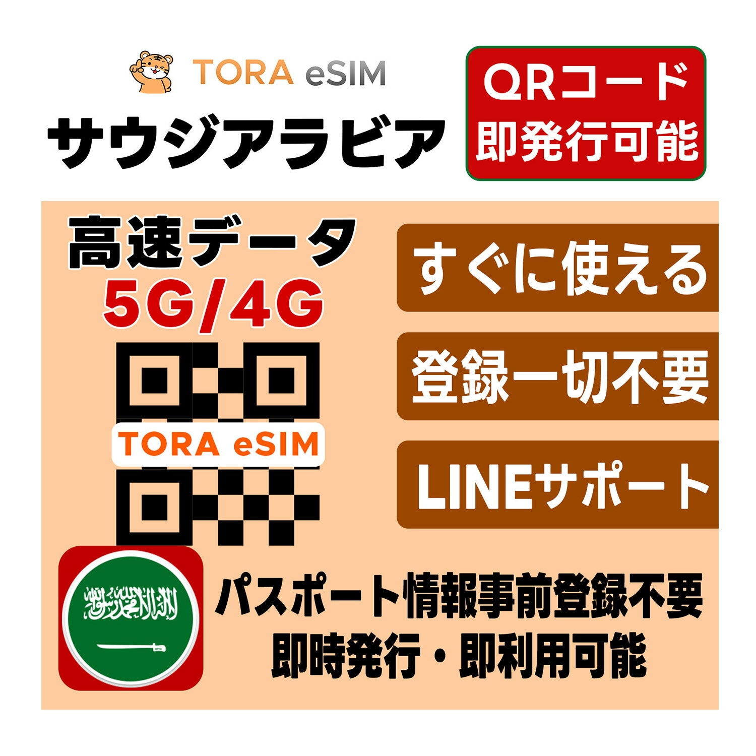 【11/20-11/26限定★10倍Pバック要エントリー】サウジアラビア eSIM | 最短30分 でQRコード自動発行 ( 24時間対応 ) | メールで納品 即利用可 | 無制限 ~ 500MB 選べるプラン| データ通信専用 ( 電話番号なし ) | TORA eSIM 正規品 | 当日発行 | 発行手続き不要