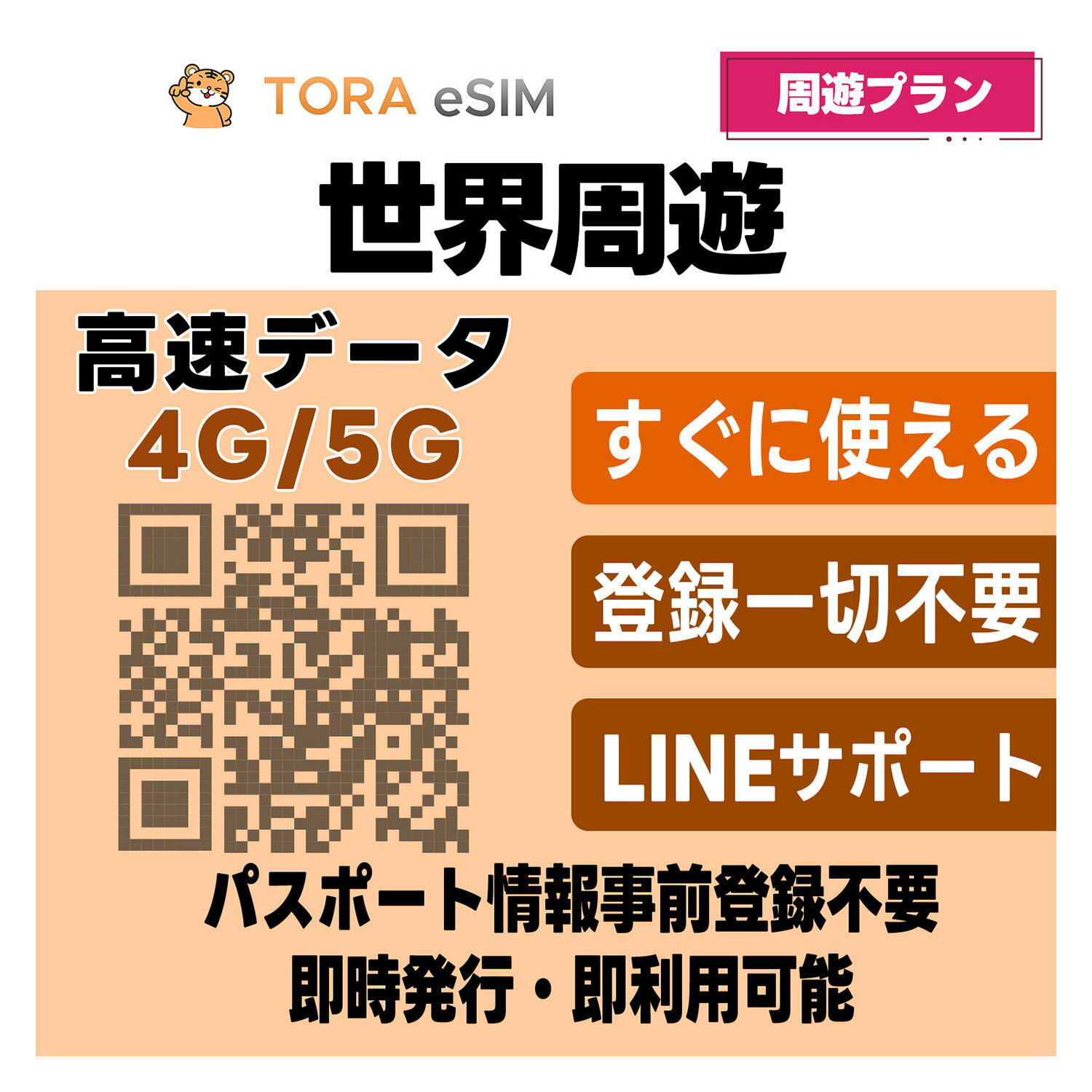 【11/20-11/26限定★10倍Pバック要エントリー】世界周遊 eSIM | 最短30分でQRコード自動発行 ( 24時間対応 ) | メールで納品 即利用可 | 選べるプラン | 114ヵ国対応 高速データ | データ通信専用 ( 電話番号なし ) | TORA eSIM 正規品 | 当日発行 | 発行手続き不要