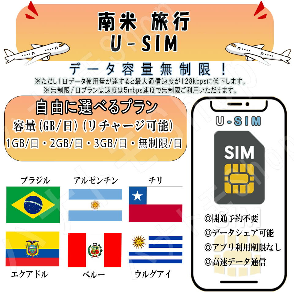 南米sim ブラジルsim アルゼンチンsim ウルグアイsim チリsim ペルーsim エクアドルsim Usim 物理sim 実名認証不要 事前開通予約不要 1GB/日 2GB/日 3GB/日 1日 3日 5日 7日 データ専用sim 高速データ通信 テザリング可能 海外出張 海外旅行