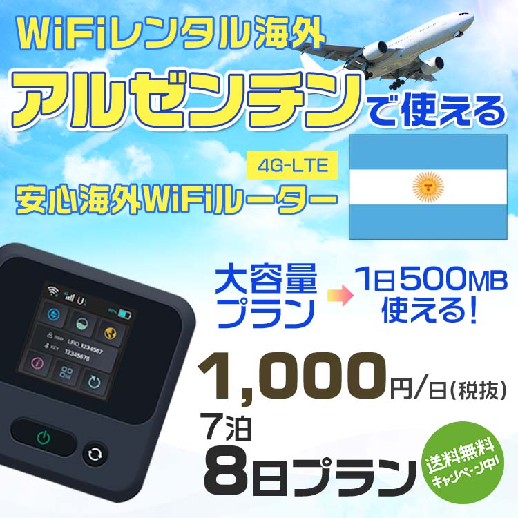 WiFi レンタル 海外 アルゼンチン sim 内蔵 Wi-Fi 海外旅行wifi モバイル ルーター 海外旅行WiFi 7泊8日 wifi アルゼンチン simカード 8日間 大容量 1日500MB1日1000円 レンタルWiFi海外 即日発送 wifiレンタル Wi-Fiレンタル プリペイド sim アルゼンチン 8日 ワイファイ