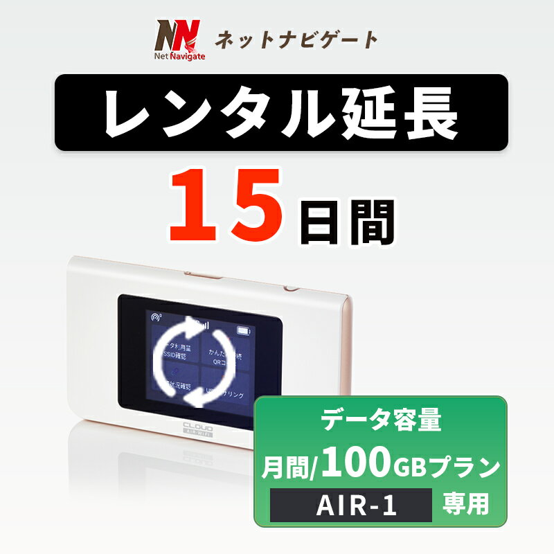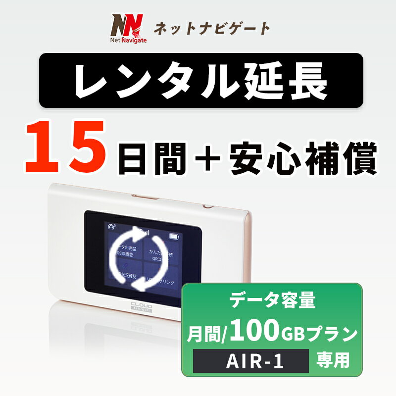 【レンタル延長】AIR-1 月間100GBプラン(+安心補償) モバイルWiFiルーター 15日 2週間 延長申込 専用ページ レンタルwifi レンタルwi-fi wifiレンタル ワイファイレンタル ポケットWiFi レンタルワイファイ Wi-Fi