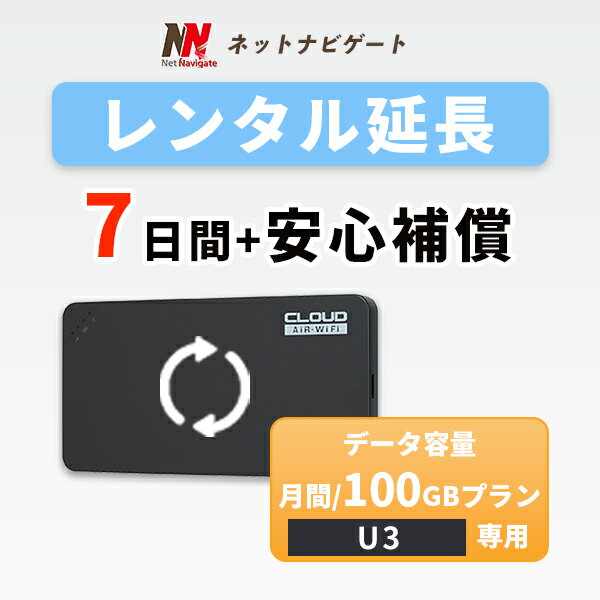 【レンタル延長】U3 月間100GBプラン (+安心補償) モバイルWiFiルーター 7日 1週間 延長申込 専用ページ レンタルwifi レンタルwi-fi wifiレンタル ワイファイレンタル ポケットWiFi レンタルワイファイ Wi-Fi